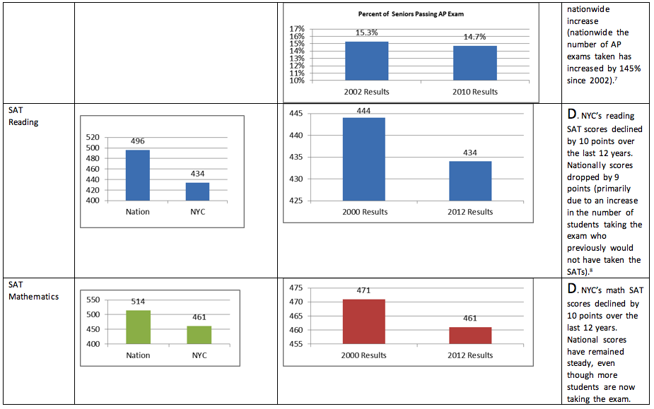 [8] http://www.manhattan-institute.org/html/cr_26.htm NYC’s 2000 SAT results. http://nces.ed.gov/fastfacts/display.asp?id=171 nationwide SAT results through 2011. http://professionals.collegeboard.com/testing/sat-reasoning/scores/averages 2012 SAT results.