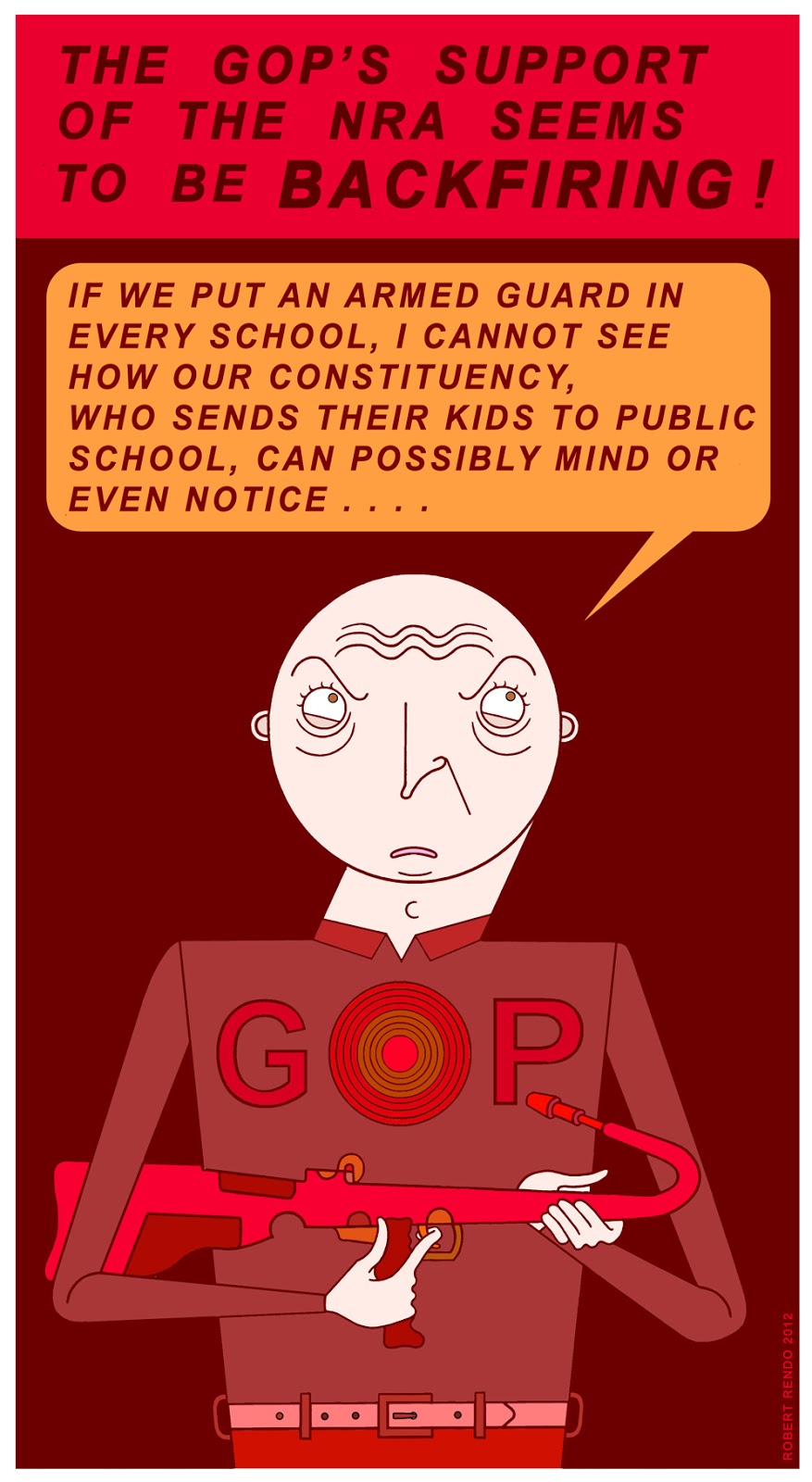 Anyway, once when he was cleaning one of his guns, it went off right in the house and hit the shower stall. So, if my brother who knows guns and who uses guns for work and must continue getting training, what makes people think teachers should be armed? Answer: ONLY an IDIOT who cannot think and who is paid off by the NRA.