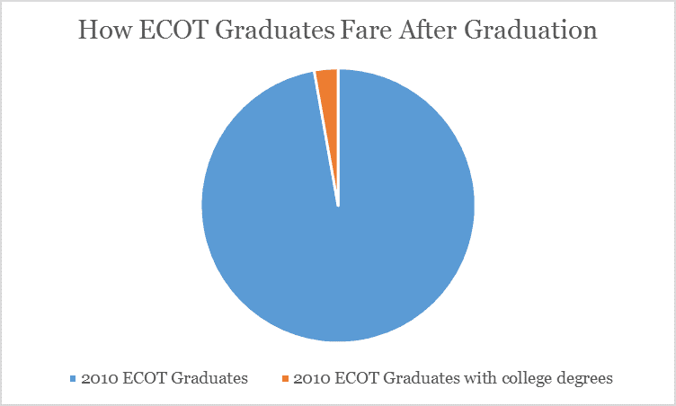 “ECOT infamously did a remarkably poor job of educating those who were, by the way. How poor? Only 109 of 3,794 ECOT graduates from 2010 earned a college degree within 6 years of graduating.”