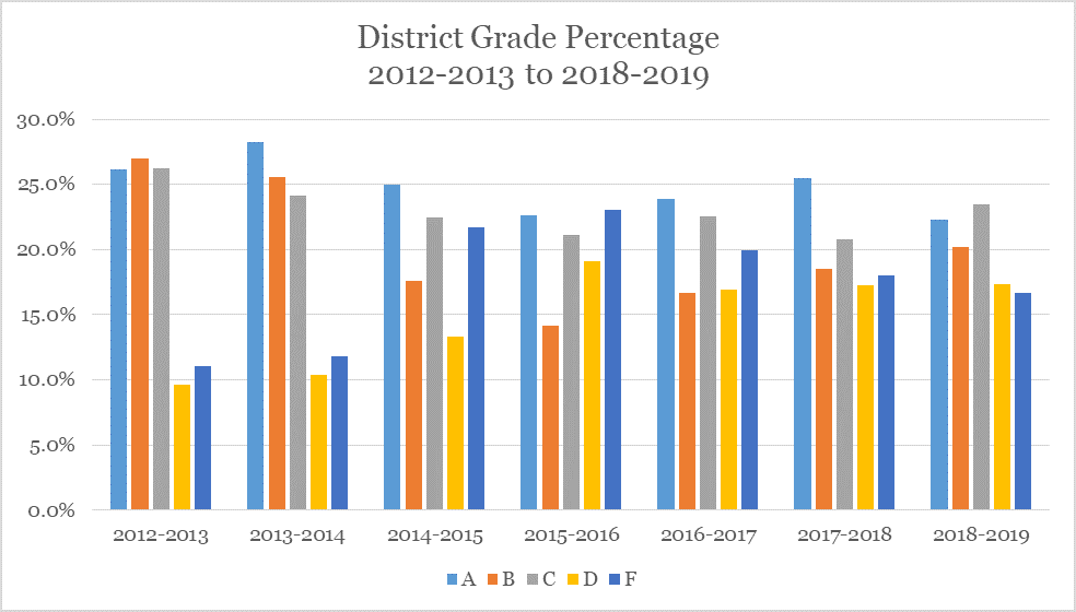 Look at school districts’ overall grade performance since the 2012-2013 school year — the first for the A-F state report card system.