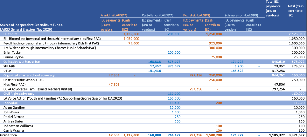 Once again, control of the Los Angeles Unified School Distict school board is up for grabs, and once again the billionaires hope to buy control so they can expand the number of charter schools. The latest financial disclosures show that Reed Hastings of Netflix has contributed $925,000 to try to defeat veteran educator Scott Schmerelson. Billionaire Jim Walton of the Walmart family added another $300,000. The charter lobby is flush with money to buy TV ads and flyers that smear Schmerelson and use vicious anti-Semitic tropes in their attack ads. The charter lobby is angry at Schmerelson for two reasons: 1. He fights fearlessly for the 80% of students in public schools. 2. He released the explosive fact that 80% of Los Angeles’ charter schools have vacancies, not waiting lists. His opponent Marilyn Koziatek has no experience in the public schools; she holds an administrative job in a charter school.