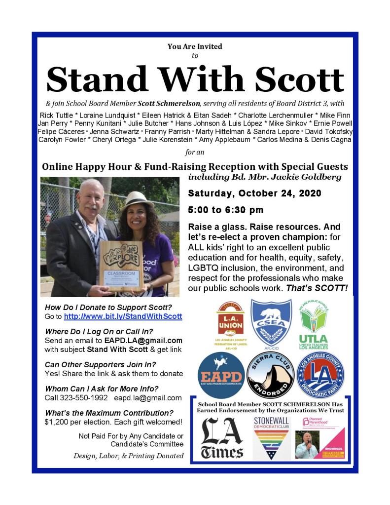 The charter industry and the billionaires want to replace Scott Schmerelson with a charter employee. They want to buy control of the LAUSD school board.
