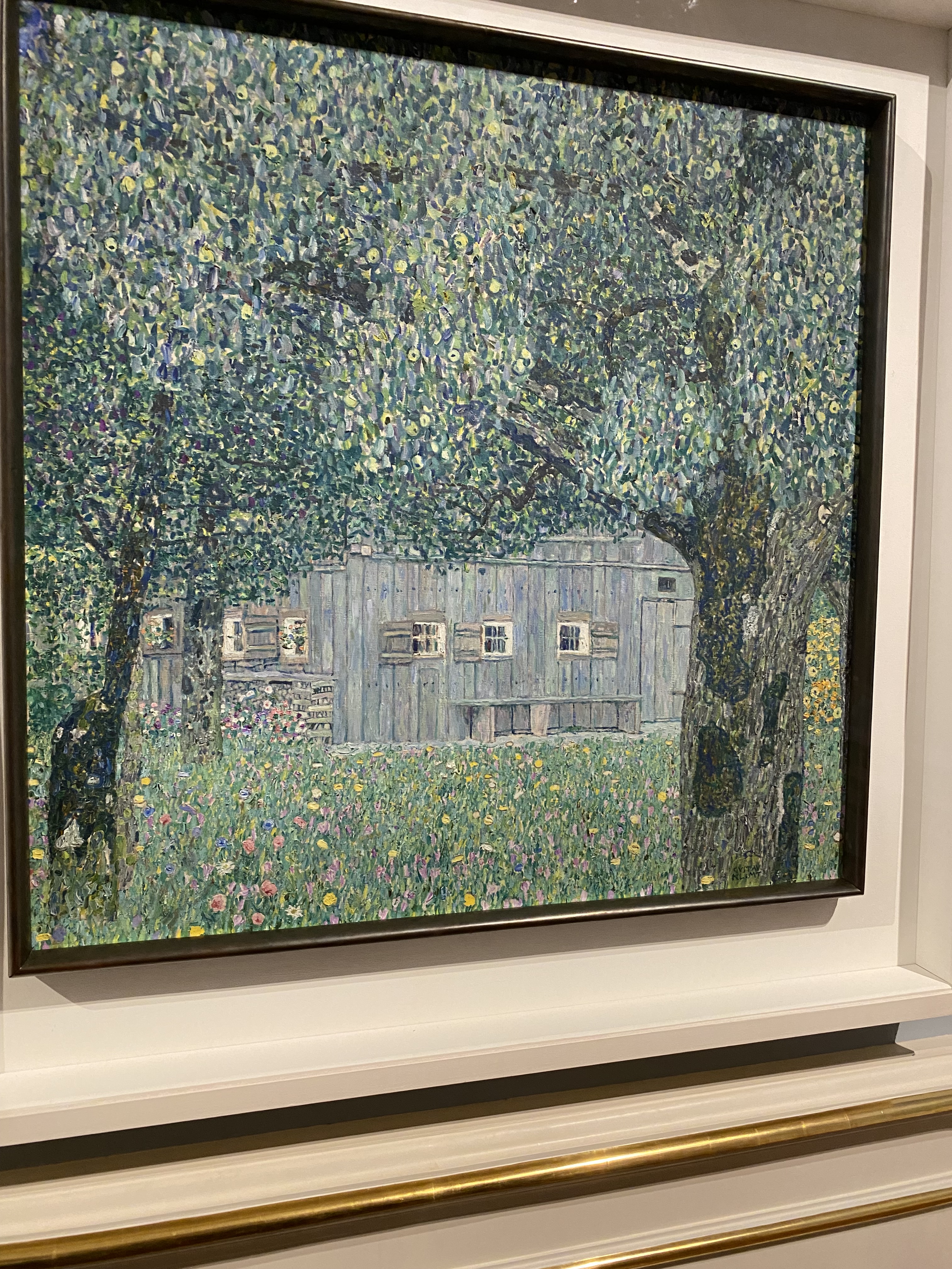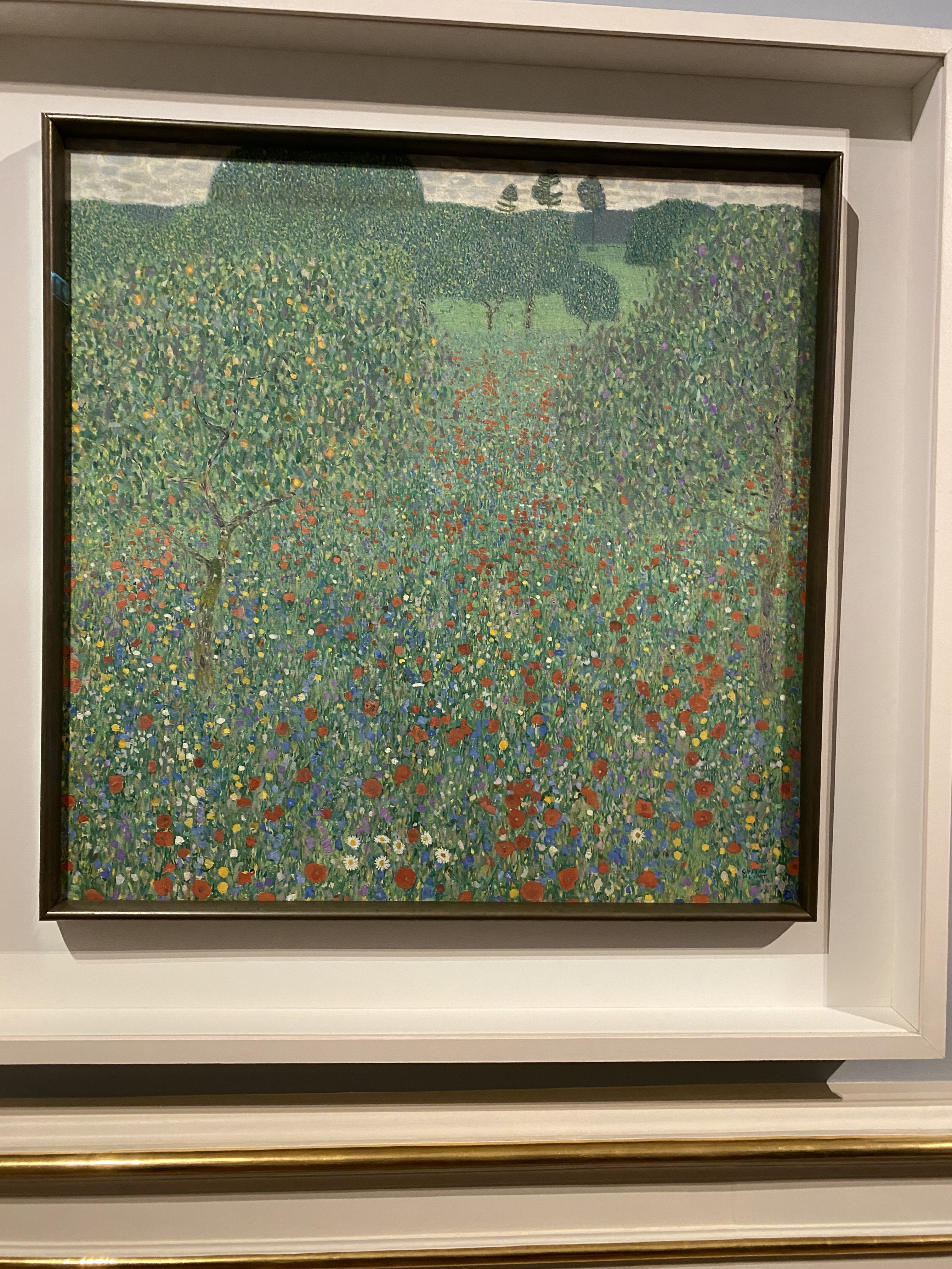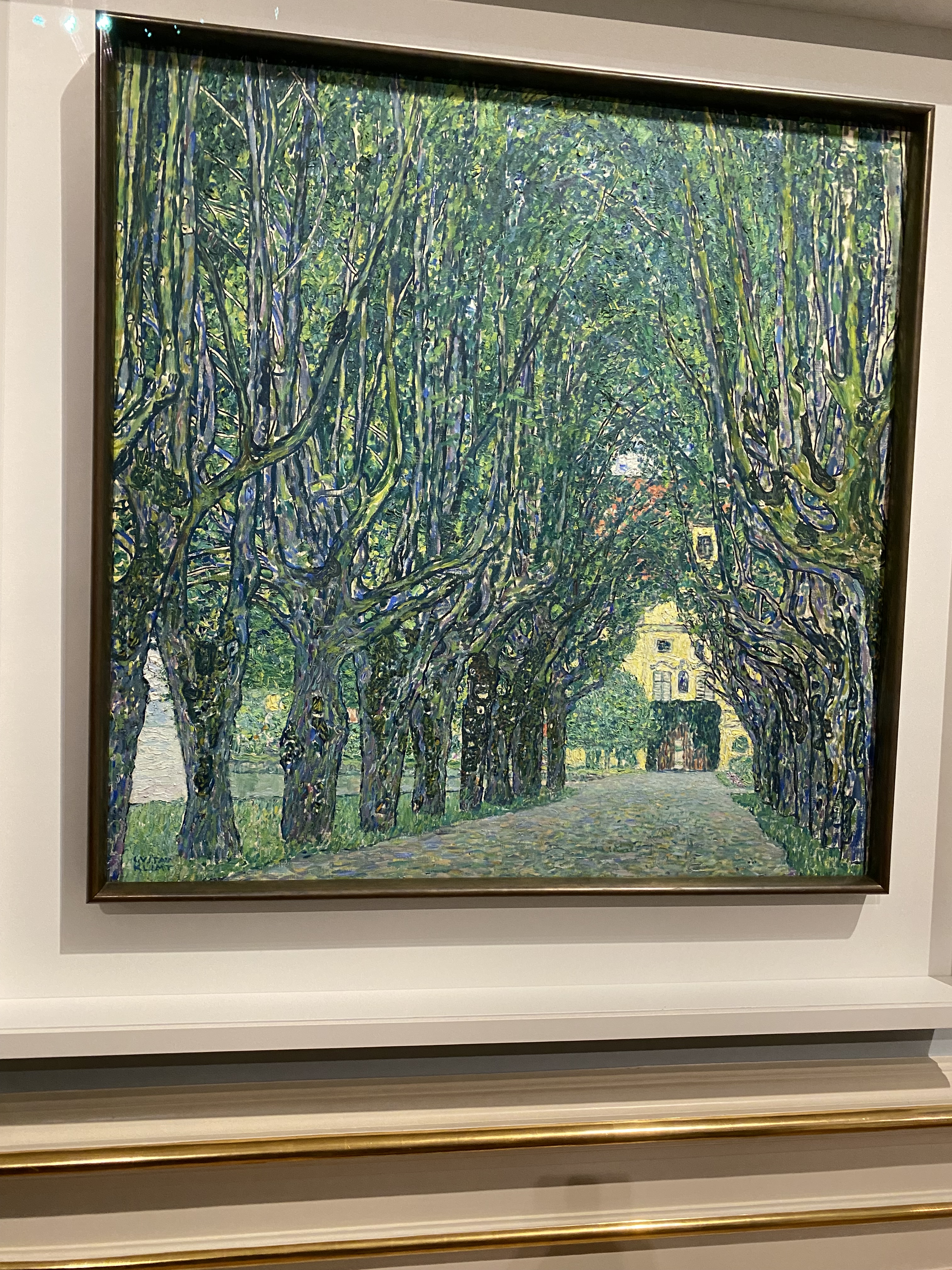 “The Kiss” attracts huge numbers of viewers, all of whom have their cell-phone cameras out or take turns posing in front of it. Personally, there are other works by Klimt that I prefer, most in the Neue Galerie in New York City. But “The Kiss” is celebrated in Austria as Klimt’s finest work. The colors are magnificent, made with real gold and other precious metals ground into paint. I visited the Belvedere Museum, a work of art itself, on September 30 in the morning.