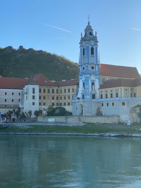 This is a beautiful part of the world. I’ll note that your picture shows not only part of the village of Durnstein, but also (on the hill in the background) part of the ruins of Durnstein Castle. It is famous for, among other things, being the place where Richard the Lionhearted was imprisoned on his way home from the Third Crusade.