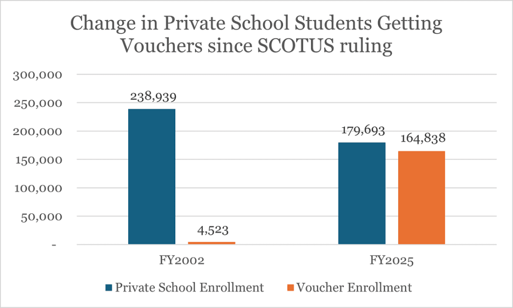 Back when the U.S. Supreme Court ruled that Cleveland’s voucher program was Constitutional in 2002, that number was 1.9%…