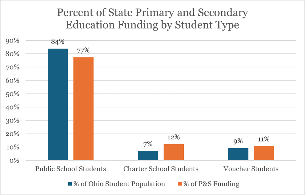 By the end of the currently proposed state budget, Public School students, who make up 84% of Ohio’s total student population, will receive 77.3% of all state K-12 funding. While the 9% of students whose parents receive taxpayer tuition subsidies will eat up 11% of all state K-12 funding¹.