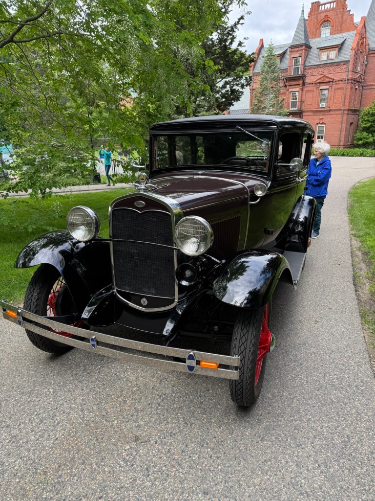 The high point of the weekend is the parade of alumnae on the last day. The youngest cohort goes first, marching about 3/4 of a mile from one end of the campus to the center, called Alumnae Hall. As each group reaches its destination, it stops and lines the road. Then along comes the next group of graduates, five years older. Eventually the road is lined with alumnae from different cohorts, with the oldest ones marching last. That was my group, about 50 women in their mid-80s. The group behind us was the class of 1955, mostly 92 years old, riding in antique Fords, Model A.